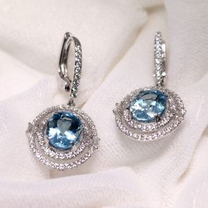 18ct White Gold Aquamarine Diamond Earrings