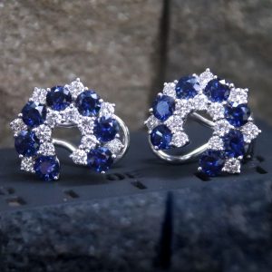 18ct White Gold Blue Sapphire Diamond Earrings