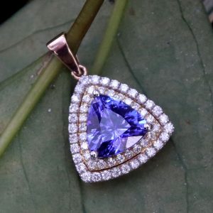 18ct Rose gold tanzanite & diamond pendant.